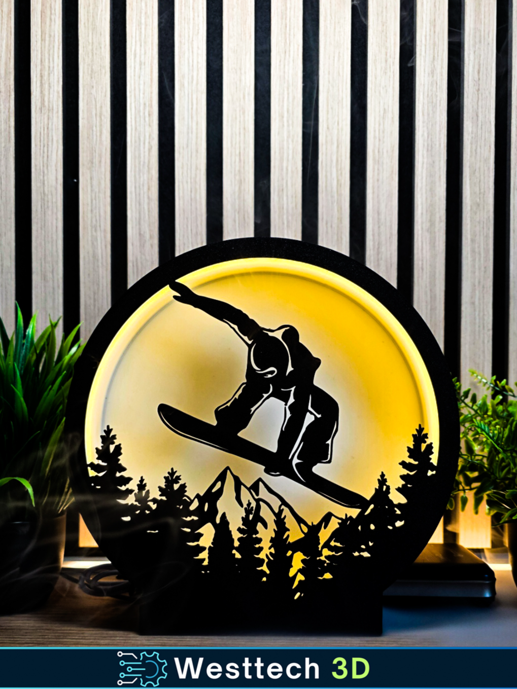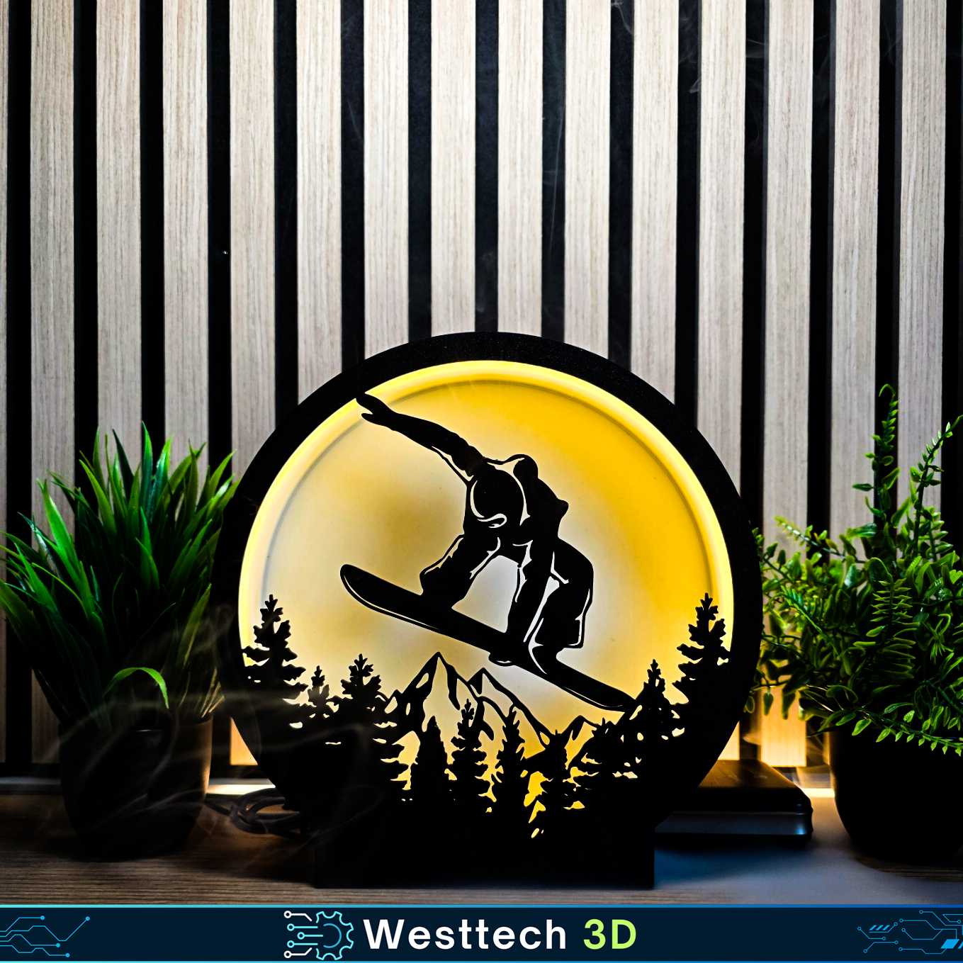 Hit the slopes from the comfort of your home with the Westtech 3D Snowboarder Lamp. The lamp features a dynamic silhouette of a snowboarder in mid-air against a glowing mountain and forest landscape. It’s the perfect accent piece for anyone who loves winter sports and adventure.