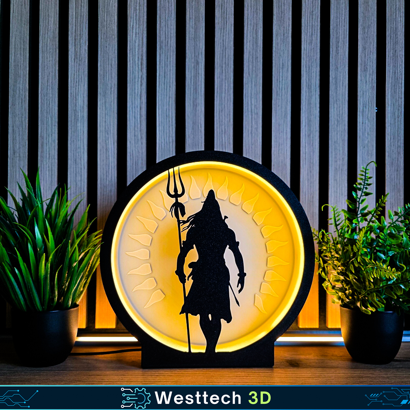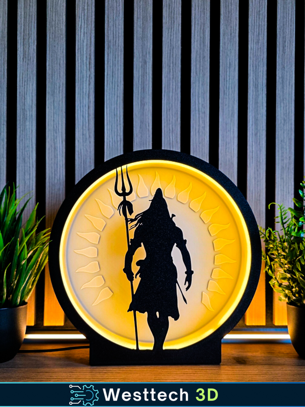 Bring a sense of peace and power to your space with the Westtech 3D Shiva Lamp. This lamp features a striking silhouette of Lord Shiva holding a trishul, set against a warm, glowing halo. It’s the perfect accent piece for meditation spaces, home altars, or to add a touch of spiritual tranquility to any room.